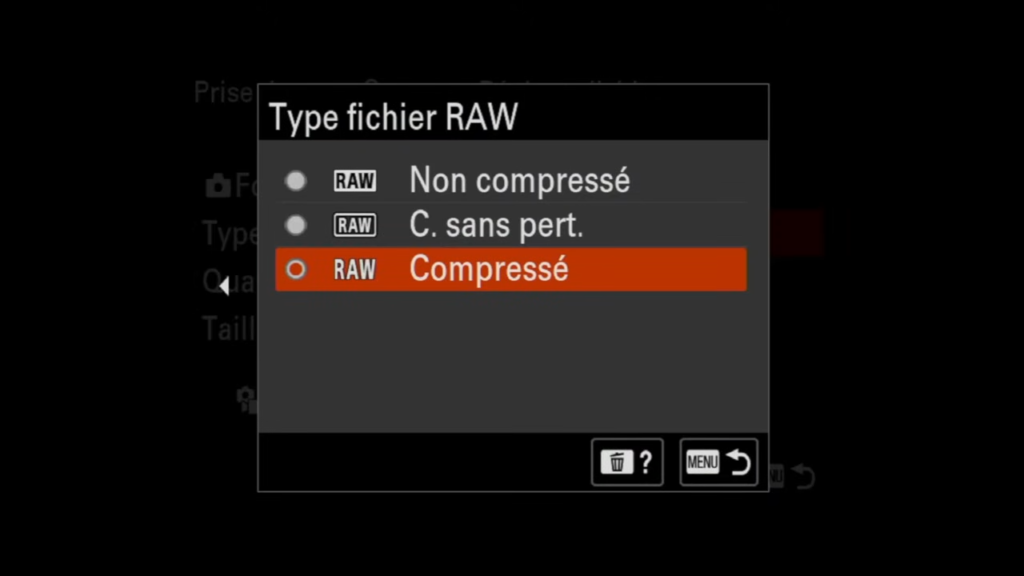 Lorsque tu choisis le format RAW sur ton Sony A7 IV, trois options s’offrent à toi :