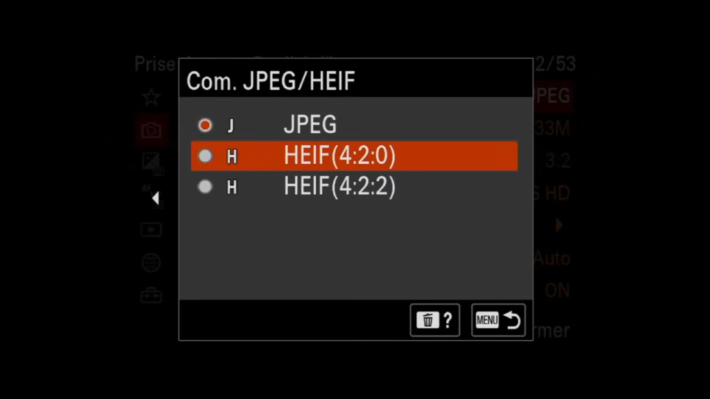 Dans les réglages de qualité d’image, le Sony A7 IV te propose de choisir entre JPEG et HEIF :
