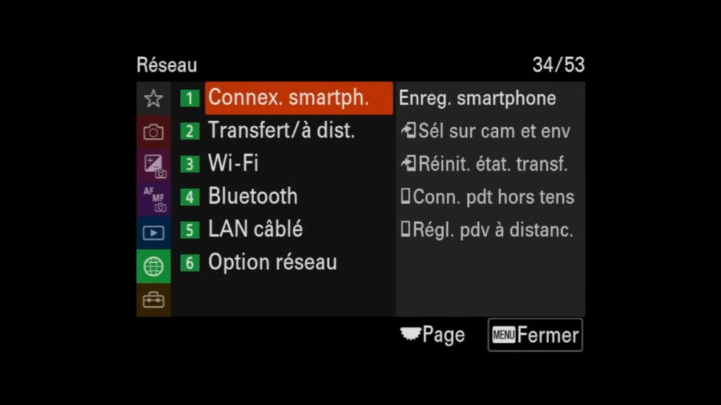 L’onglet Réseau de ton Sony A7 IV te permet de connecter ton appareil à différents réseaux pour simplifier le partage de photos et vidéos. C’est une fonction pratique si tu souhaites transférer rapidement tes images ou contrôler ton appareil à distance. Tu peux explorer cet onglet pour configurer la connexion Wi-Fi, le Bluetooth, ou même le contrôle à distance via l’application.