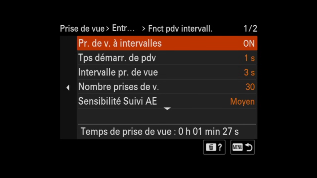 Pour enregistrer la touche 2 , il suffit de modifier les réglages pour le timelapse, et de les enregistrer de la même manière.
