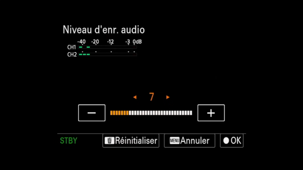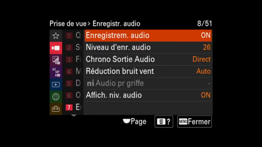 - Niveau d’enregistrement audio : Une fonction essentielle qui me permet d’ajuster le niveau d’enregistrement audio en temps réel. A mon sens, indispensable de pouvoir y accéder rapidement.