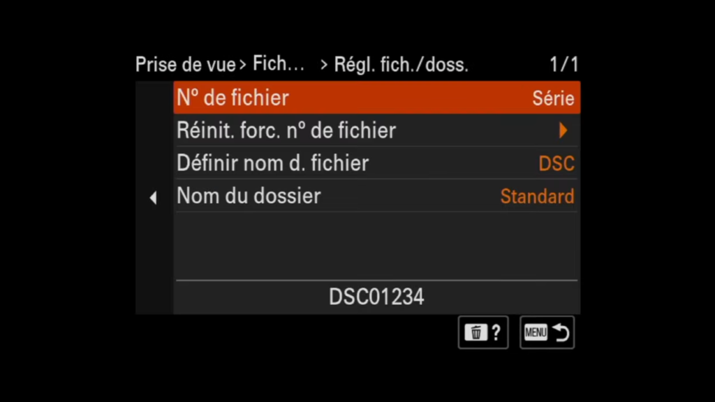 Cette option permet de réinitialiser le numéro de fichier pour ne pas continuer la série, ce qui est particulièrement utile si tu achètes un appareil photo d’occasion. Cela remet le compteur à zéro et garantit que les nouveaux fichiers ne risquent pas de se mélanger avec les anciens.