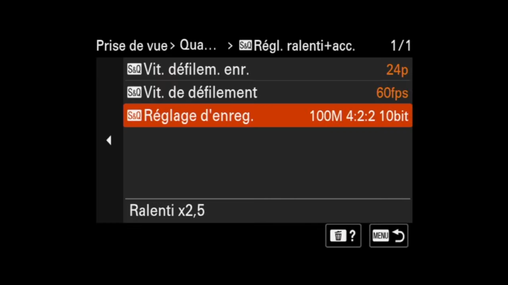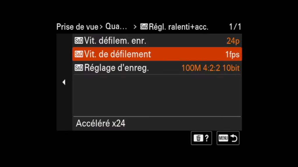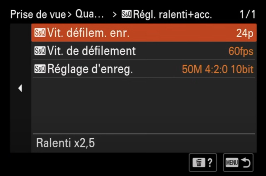 Il peut être judicieux de programmer les touches 1, 2 et 3 pour des effets spécifiques. Cela permet de basculer rapidement entre différents types de prises de vues. Pour ma part, j’enregistre un mode 1 qui fait du ralenti, un mode 2 qui va réaliser un timelapse rapide.