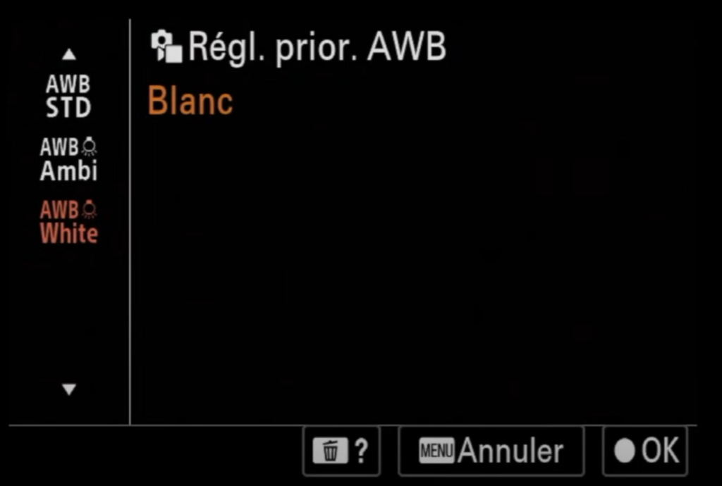 Je choisi également une balance des blancs en lumière du jour et non pas en auto.