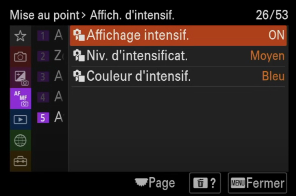 - Signal sonore : je les désactive car je n’aime pas avoir de signal sonore à chaque fois que je fais une mise au point.