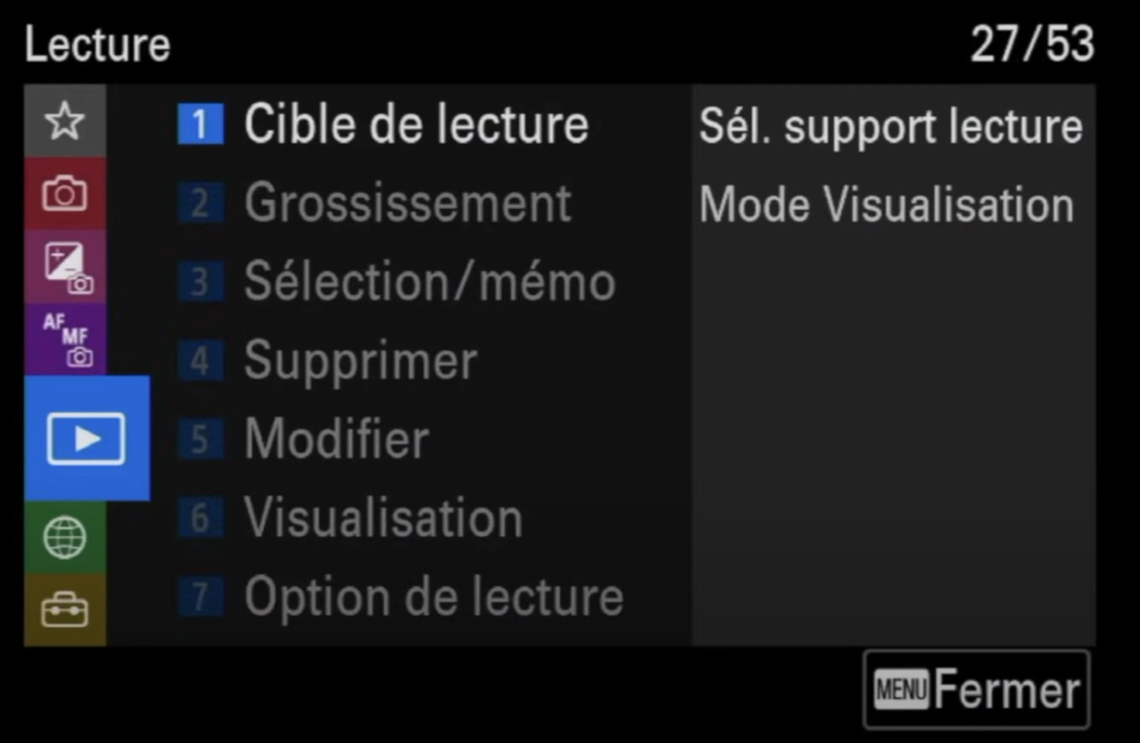 Le Sony A7 IV propose diverses options de lecture pour personnaliser l’affichage de tes images et adapter l’affichage à tes préférences.