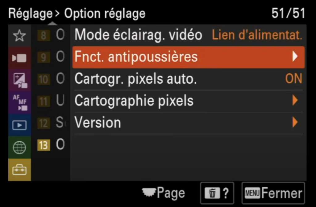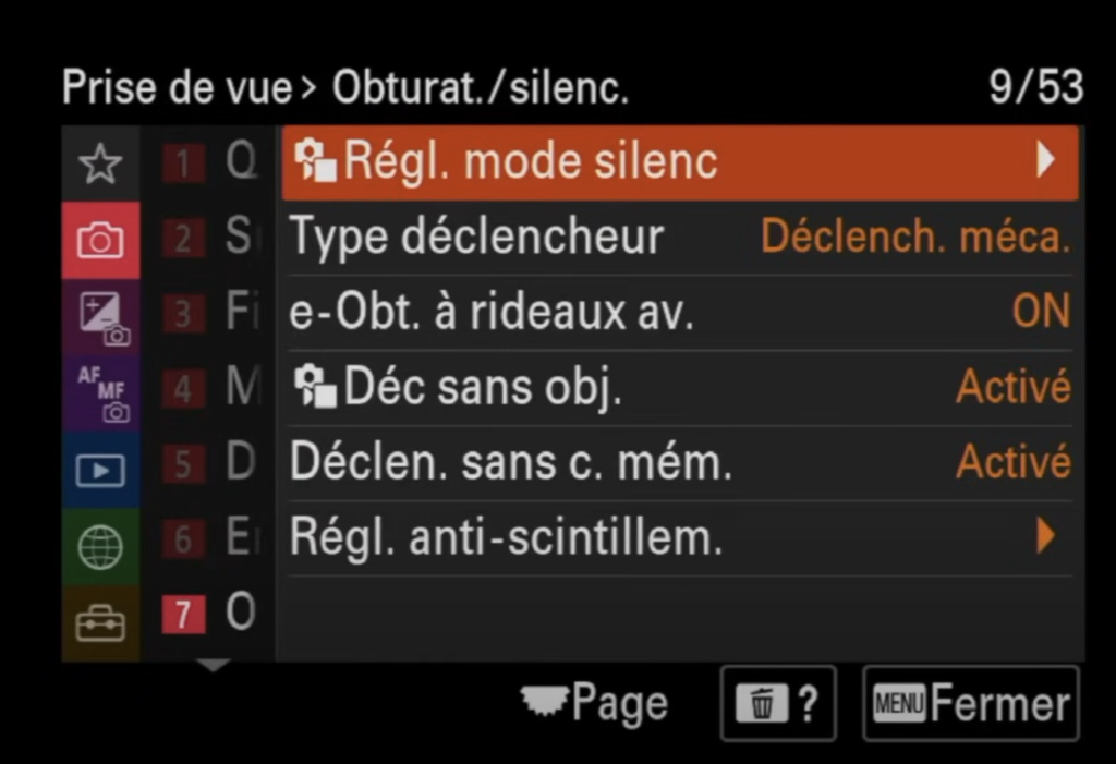 - Fonction anti-poussières : Pour une protection supplémentaire, vous pouvez activer la fonction de fermeture automatique de l’obturateur à l’arrêt de l’appareil. Cette option limite les risques de contamination du capteur par des particules extérieures.